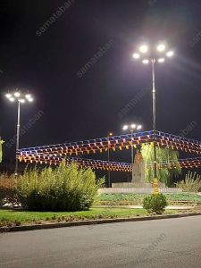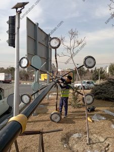 پایه چراغ طرح آسمان یکی از انواع پایه چراغ های دکوراتیو میباشد که برای تامین روشنایی فضاهای بزرگ و وسیع مانند میادین بزرگ شهری و بوستان ها و… کاربرد دارد. از این محصول میتوان به عنوان جایگزین برج نوری چندوجهی استفاده نمود چرا که این محصول علاوع بر تامین روشنایی برابر با روشنایی یک برج نوری از زیبایی ظاهری خوبی نیز برخوردار است که از لحاظ زیباسازی شهری بسیار با اهمیت میباشد.